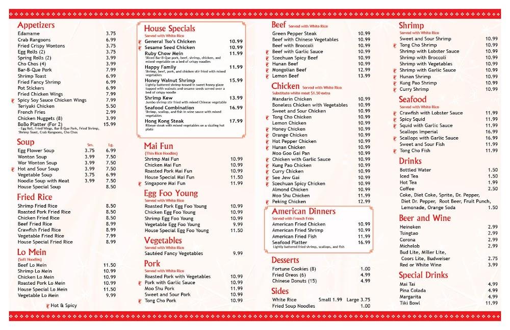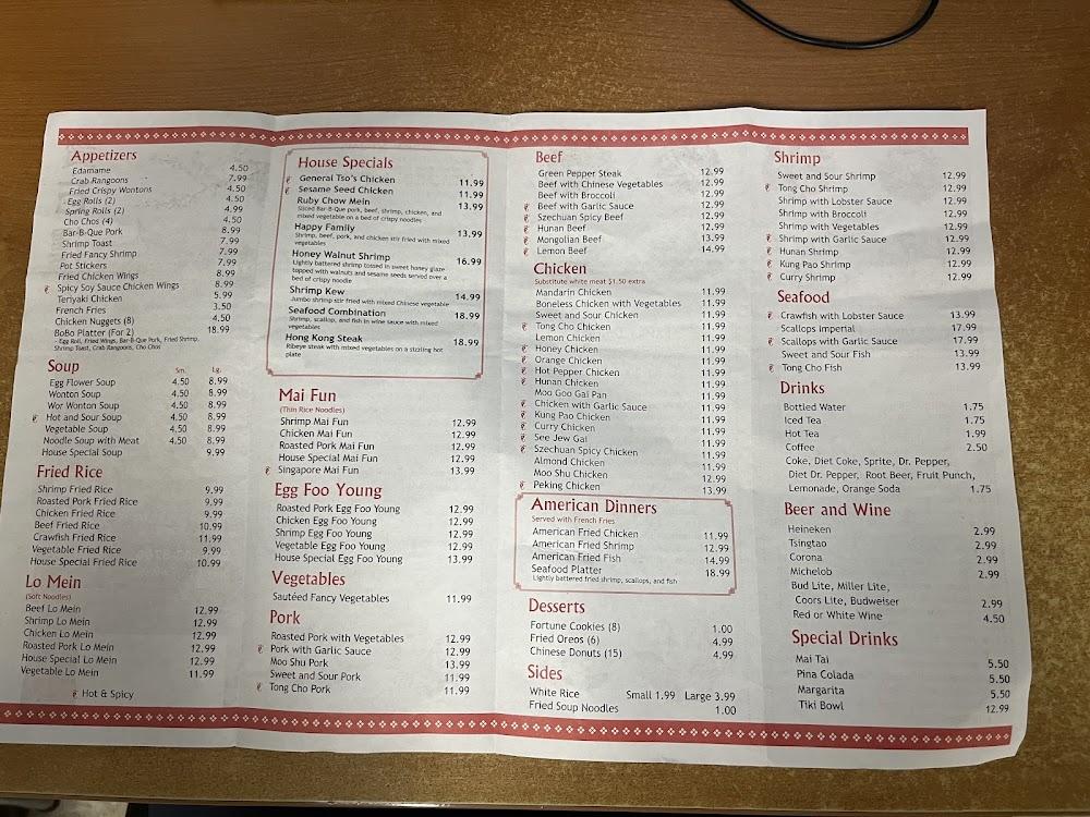 For entrees, diners can choose from chicken, beef, and vegetarian options. Popular items include Mandarin chicken and Szechuan beef. Fried rice and lo mein dishes make for tasty sides or standalone meals. Family dinners and lunch specials further enhance the menu. Desserts, though fewer, offer a sweet finish, including fried Oreos and fortune cookies. Overall, Ruby Garden delivers a well-rounded culinary experience.